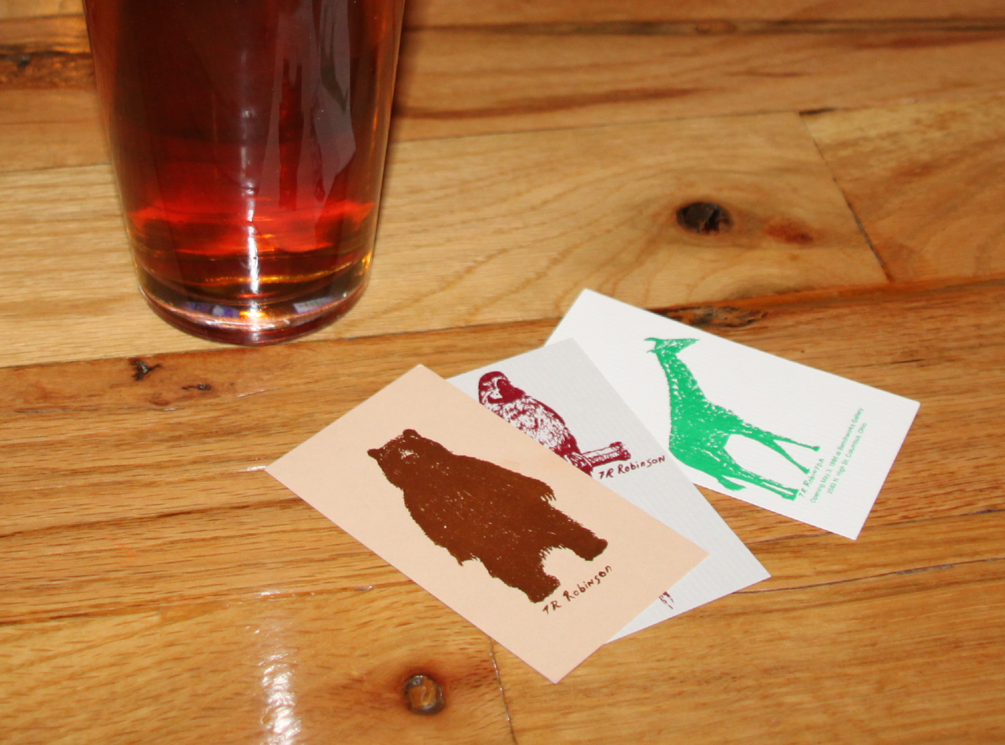 TR Robinson created Animal Cards after graduating from Ohio University in 1985, as a way to promote his art. During his first job as a paste up artist at a business card print shop he utilized the extra card stock to put his art on. He then proceeded to hand them out everywhere. Animal Cards quickly became collectibles and were traded, bought from other collectors and eventually disappeared from circulation. There were over 62,000 made and handed out to friends, strangers and even celebrities.